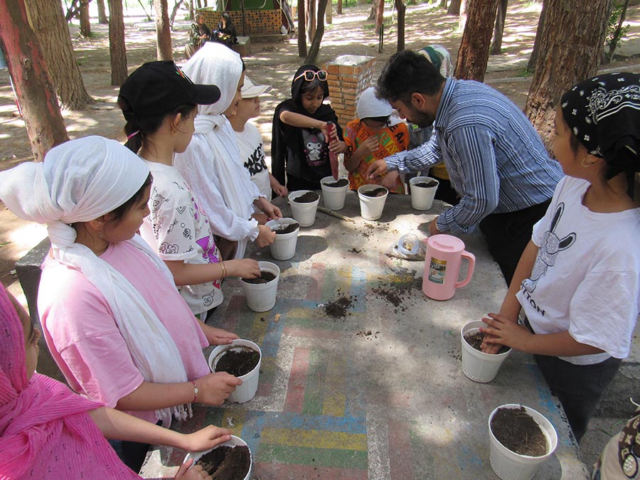 در این برنامه نیز کودکان با همراهی مربیان، با مراحل کاشت بذر آشنا شدند و گلدان‌های خود را برای کاشت بذر گل یا گیاه خانگی آماده کردند.